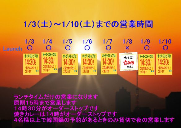 あけましておめでとうございます 今年もよろしくお願いします 新年は2日(金)から営業します