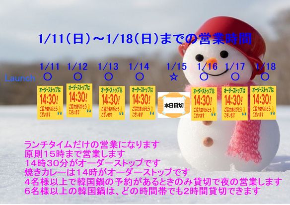 12月27日月曜日は 11:30開店です